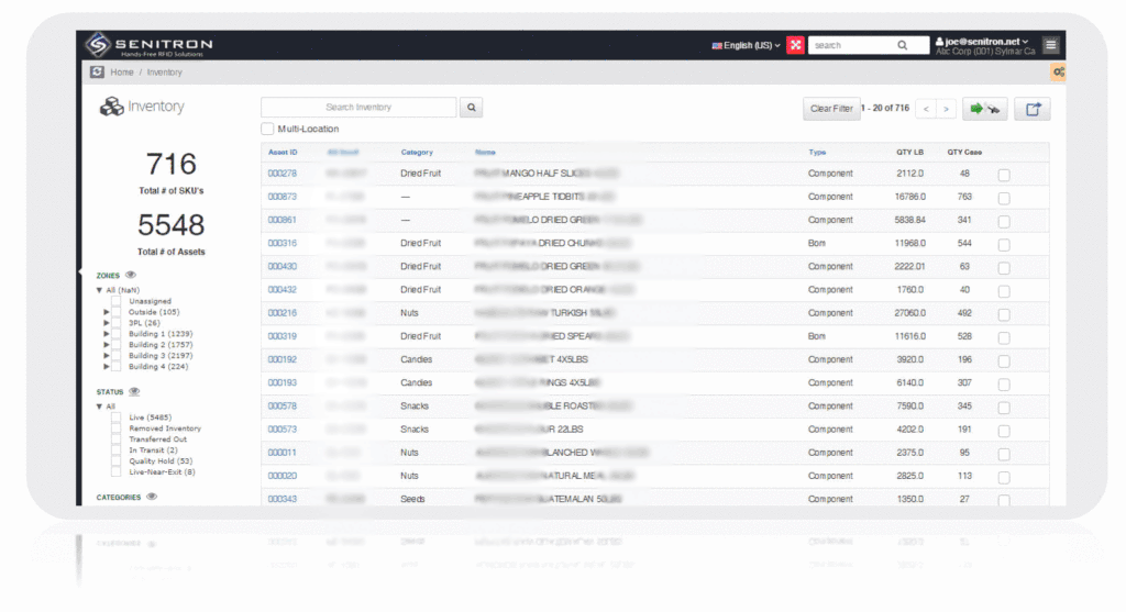 Inventory & Tracking Real-time inventory quantities, current location, and movement history. |